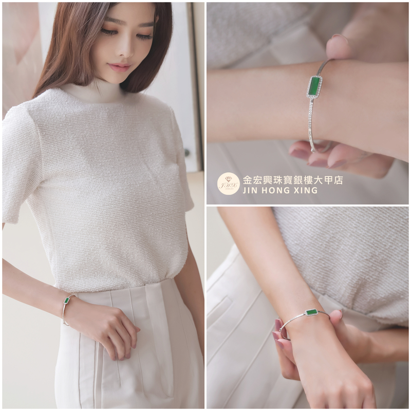 必Buy款式陽綠翡翠鑲鑽手環,